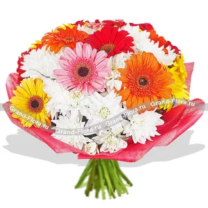 Нежное облако - букет из гербер, хризантем и эустом