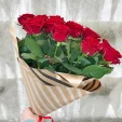 Свежий, хороший букет, розы 70 см как и написано, даже пахнут! Спасибо!