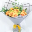 Внимание: цвет роз может отличатся в виду природного происхождения. Допускается оттенок от желтого до оранжевого. Декоративная зелень  может быть заменен на другую стилистически подходящую.